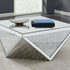 Add dazzling geometric with the Contemporary Silver Coffee Table featuring a unique triangle design crystalencrusted finish and mirror accents Accent with candles books or an elegant floral arrangement to create a custom look that showcases your personal style For a cohesive glamorous effect pair with other pieces in the collection to fully furnish your living room in luxurious style