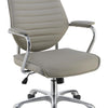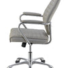 Prepare for the long conference call and stay comfortable in this high back office chair Featuring an aluminum base this chair is upholstered in a taupe faux leather and features a high back and cushioned arm rests for ultimate comfort Adjustable seat and caster wheels let you roll into the perfect position for a productive day