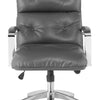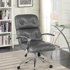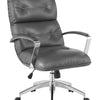 Office chair upholstered in grey leatherette Polished aluminum fivestar base 6 forward tilt functionality Pneumatic seat height adjustment adjustable tilt tension and tilt lock