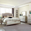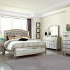 Escape into an oasis of glitz and glamour with this eyecatching Eastern King Bed from the Bling Game Collection This metallic bed is defined by a camel back headboard with thick upholstery and button tufting as well as footboard lining with mirror panels The bed is elevated and supported by beautiful turned legs Complete the look of your luxurious Gatsbyera inspired king bed with this collections complementary case pieces available separately