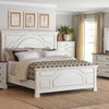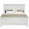 Rustic construction meets cottagechic charm with this Eastern king bed This piece cuts a classic profile the headboard and footboard capturing attention with their decorative paneled designs A weathered white finish lends a sense of vintage appeal like a treasured heirloom sure to provide a relaxing bedroom environment for years to come