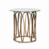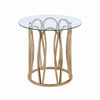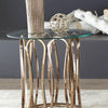 Offering a contemporary take on Art Deco design influences this dazzling end table makes a big impression with its curvaceous base in polished chocolate chrome The round tempered glass top allows the base to take center stage Use this piece as part of any interior dcor theme that could use a touch of glamour
