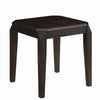 Keep it simple and functional with this Transitional Walnut End Table Available in a rich walnut finish this end table has strong angular legs and square table top Give your favorite picture frames their perfect place to rest on this end table