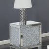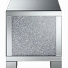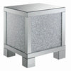Add impressive shine and sparkle with the Contemporary Silver Side Table featuring a crystalencrusted finish and mirror accents This pieces smaller dimensions enable you to add a dramatic glamorous look to any space Pair with other pieces in the collection and accent with candles an elegant floral arrangement or a stylish lamp to create a cohesive lavish look for your room