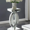 Create a dazzling glamorous effect with the Contemporary Silver Mirrored Side Table featuring an elegant curved base and mirrored accents for a stunning chic look Feature a single table next to a cozy reading chair or use a pair of these tables to frame a luxurious master bed or opulent sofa For a cohesive look furnish your living room with multiple pieces from this collection and enjoy their crisp dramatic style for years to come