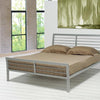 This sleek metal full bed is defined by clean horizontal lines on both the headboard and footboard to create an attractive relaxed style Thick metal frames the footboard headboard and side panel of the bed to bring definition to the piece This design is intended to blend in easily with a variety of existing bedroom decors