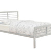 This sleek metal twin bed is defined by clean horizontal lines on both the headboard and footboard to create an attractive relaxed style Thick metal frames the footboard headboard and side panel of the bed to bring definition to the piece This design is intended to blend in easily with a variety of existing bedroom decors