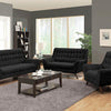 Bring the charm and simplicity of midcentury modern design into your living room with this black chenille loveseat The loveseat is built to accommodate seating for two and features tufting on both its back and seats for a decorative and elegant touch Enjoy comfortable pocket coil seating along with padded arms Four thin angled wooden legs finished in cappuccino add a final touch of style to the piece