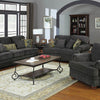 This decorative traditionallystyled loveseat features individuallyplaced nailheads plush rolled arms pocket coil seating and upholstery in smokey grey fabric with leg finish in brown The loveseat is built to comfortably seat two An excellent choice for those seeking a loveseat thats big on cushioning and comfort