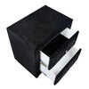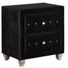 Create a magical bedroom design with the Deanna Contemporary Black and Metallic Nightstand Made from Asian hardwood this twodrawer nightstand is finished in a black velvet fabric with metallic legs Stainless steel and diamond hardware and nailhead trim add a touch of glamour to the piece A feltlined top drawer ensures your keepsakes and trinkets are safely stored