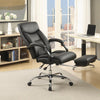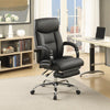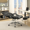 This highback ergonomic office chair with incremental footrest can recline to a fully horizontal position and locks at any position in between The chair is upholstered in a black faux leather which adds to the style and comfort of the piece Enjoy extra versatility with this office chairs rolling wheels