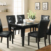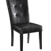 This casual dining side chair is perfect for those seeking that classic upholstered accent chair With a dark cappuccino wood finish this chair is upholstered in a black faux leather for a sleek look Button tufting to the seat and back created a textural look to the piece Ultimate comfort and longlasting support will come with this dining side chair