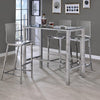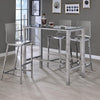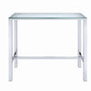 Serve your favorite snacks or beverages in style with this handsome contemporary bar table Chrome legs and transparent glass combine to create a versatile look suitable for any modern or minimalist interior style This high rectangular table can also serve as a standin for a sofa table useful for holding a table lamp or displaying decorations
