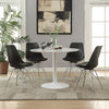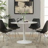 This dining table offers homeowners a retro and contemporary feel The base is a modern take on the tulip style pedestal design with clean lines and a small footprint Finished in a glossy powder coated white over metal this sleek table is a great addition to any dining space