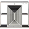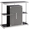 Hypnotize your guests around the bar with this funky black bar unit With a chrome metal finish this bar table features glossy black glass shelves and table top Four shelves with guardrails are also available as well as a stemware rack to keep glasses within easy reach