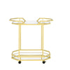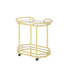Serve up some great drinks for your guests on this rolling Traditional Brass Serving Cart Constructed from steel and glass this serving cart comes in a brass finish This cart includes two tiers of shelving with guardrails and casters to move happy hour to wherever you need it