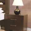 Keep all your nighttime essentials within easy reach on this twodrawer nightstand from the Jessica Collection Crafted from solid wood and ash veneers in a rich cappuccino finish this nightstand has silver tone bar hands for an easy pull Felt lining in the top drawer lets you safely store valuables and keepsakes Add this contemporary bedside table to your master bedroom