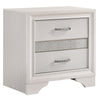 Add some fun and cheer to your bedroom with this Miranda Modern Two-Drawer Nightstand. An all-white finish provides an elegant and timeless look for your bedroom. Felt-lined top drawer helps safely store jewelry and keepsakes. A hidden drawer for jewelry adds a fun perk of functionality.