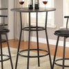 Enjoy a conversation and a drink at this barheight table This charming circular table features a wood top and metal base A sleek black finish complements its retro style To complete the look add the matching swivel bar stool seat upholstered in black faux leather