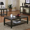 A beautifully crafted piece this Wood Top Espresso Table features a deep rich finish The bowed legs add to the style of the design making this a unique piece The bottom storage shelf adds to the versatility sure to fit into most living room designs