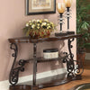 Make your neighbors jealous with this oneofakind sofa table With ornate metal scrollwork beveled wood edges and tempered glass top this will certainly be the showpiece of your living room hallway or any room that deserves a bit of extra beauty and storage Its sturdy glass can hold anything from plants to sculptures This gorgeous piece of furniture will be the envy of guests
