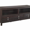 This television console makes it easy to organize your media area without sacrificing style Two large cubbies offer plenty of space for important electronics like DVD players and game consoles while a series of drawers at the bottom are a handy way to keep smaller accessories right where you need them The dark cappuccino finish is sure to work well with a variety of dcor styles