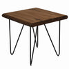 With stylish hairpin legs and simple wood construction this end table echoes a few of the midcentury modern design features that proved to have the most staying power The solid mahogany top finished with hickory veneer offers superior durability and value without sacrificing style Pair with coordinated living room dcor or use anywhere in the home that could use a simple and stylish table like this one