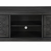 60 TV console finished in rustic grey Constructed with poplar MDF and mahogany veneer Features two doors and three 3 adjustable shelves Metal knobs finished in bronze Maximum TV size bezel included 66 Also available in golden brown 708132