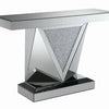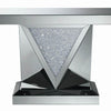 Add a dazzling geometric look with the Contemporary Silver Sofa Table featuring a unique triangle design crystalencrusted finish and mirror accents Place behind a sleek sofa or sectional to enjoy the dramatic glamorous look this piece adds to any space Combine with other pieces in the collection and accent with candles an elegant floral arrangement or a stylish lamp to create a cohesive lavish look for your room