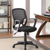 This casual wheeled office chair showcases a classic design youre sure to love Upholstered in a patterned black fabric this chair features a black mesh back for comfort and breathability A black finish throughout completes the look Adjustable height functionality lets you get the perfect setup in front of your desk to get to work