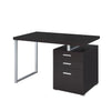 Handsome and adaptable this writing desk in rich cappuccino would make a wonderful complement to any home office space Two drawers outfitted with stylish silverfinished hardware provide ample space to store basic office supplies Below the drawers is a filing cabinet that can accommodate both legal and letter size files Reversible construction ensures the storage unit can sit on either side of the desk