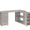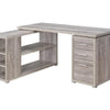 This Lshaped desk from the Yvette Collection offers plenty of desk space to be productive with shelving and cabinets for additional storage needs Constructed with MDF particle board and engineered veneer this grey driftwood finished desk features a reversible setup with open shelves and three drawers including a file cabinet This desk is also available in cappuccino weathered grey and elm