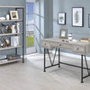 This writing desk from the Guthrie Collection will look great in both industrial and modern decorated offices With a dark metal base this desk is finished in a grey driftwood and features three drawers to hold all your extra pens and pencils Sit down and get to work in style at this writing desk