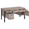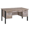 With its combination of clean lines black metal frame and warm aged finish the Samson Rustic Weathered Oak Office Desk delivers stylish function to suit any home office This desk features four drawers and one cabinet to provide versatile storage options for files books computer equipment and office supplies This Sampson office desk offers durable construction and a simple design that complements a rustic contemporary farmhouse or eclectically decorated home