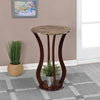 With a curved base finished in chocolate and a beautiful faux marble top this tableplant stand can make for an interesting accent piece in any room With a chocolate finish on the base and a faux marble top this table is stylish and beautiful On the base sets another small shelf perfect for storing accent pieces while leaving the tables top clear for use