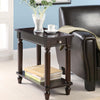 Dress up your accent chair or recliner with this cappuccinofinished side table This piece features a turned leg design long rectangular shape and metal accent drawer pull A small storage drawer and bottom shelf create space to store remotes coasters and magazines or display candles and collectibles