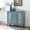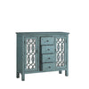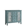 With French countryinspired styling this accent cabinet brings pleasant color and utility to any room The antique blue finish works great as an accent color especially coupled with the mirrored faces of the doors Offering four drawers and two doors with interior shelves this accent cabinet can bring convenient storage to your space The cabinets vintage design is ideal for those looking for a retro yet still traditional piece