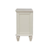 Dream of crashing waves and cool sea breezes with the Sandy Beach ThreeDrawer Nightstand by your bedside Crafted with tropical veneer and hardwoods in a white finish this nightstand features a feltlined top drawer to keep your valuable keepsakes safe A pullout tray offers extra space for that last cup of tea Also available in cappuccino and black this coastal collection will be the perfect addition to your beachy bedroom