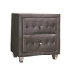 The Deanna Bedroom Collection exemplifies luxury with details such as rich metallic grey upholstery faceted buttons and carved legs The Deanna Metallic Nightstand additionally features English Dovetail drawer construction metal extension glides and a feltlined top drawer A gorgeous way to keep all your nighttime essentials close at hand