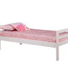 Triple the fun with this bunk bed for three In a beautiful white finish this bunk bed consists of three twin beds stacked and accessible with an attached ladder Guardrails surround the top two bunks for safety Constructed in a solid pine for durability The beds can be used separately for flexible configurations bunkie board not required Perfect for small rooms