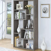 Interlocking shelves give this bookcase a sense of artistic appeal With small and large niches its easy to find a space for just about anything tall plants vases books small collectibles and more The weathered grey finish is sure to complement a wide range of interior dcor styles