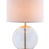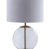 Make a subtle and sophisticated statement with this clear glass lamp with brass metal accents and a crisp white shade by Shade diffuses light for a natural glow making this perfect for a cozy reading nook library or bedroom The simple clear and white style works well in any decor